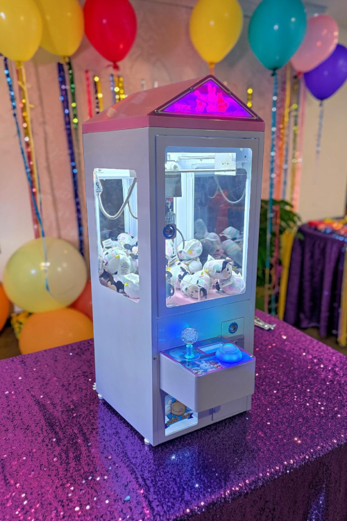 The Mini Claw Machine is a compact, eye-catching arcade-style rental that brings a fun, hands-on challenge to any event. Guests can take turns steering the claw, aiming carefully, and trying to grab a prize before time runs out, making it an easy-to-understand attraction that keeps people coming back for “just one more try.” Its smaller footprint makes it a great fit for tighter spaces like party tables, check-in areas, vendor booths, school functions, fundraisers, and promotional events, while still delivering the lively, nostalgic feel of a classic arcade game. It works well with small prizes, candy, toys, or novelty giveaways, and its bright lights and playful design naturally draw attention. Simple, interactive, and fun to watch as well as play, the Mini Claw Machine adds a memorable burst of entertainment and gives guests a chance to test both skill and luck in a way that feels exciting from the first try to the last.