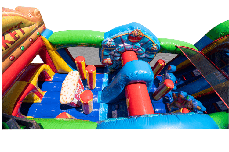 The 47 FT Fun Fair Obstacle Course is a long, high-energy rental designed to bring fast-paced excitement to any event. With its fun fair theme and impressive 47-foot length, this obstacle course offers plenty of room for active play, letting guests climb, crawl, weave, and work their way through the course in a playful challenge. It’s a great choice for adding movement, competition, and crowd-pleasing fun to parties, school events, festivals, and other celebrations where you want guests to stay engaged and entertained.