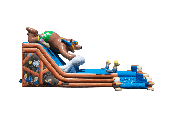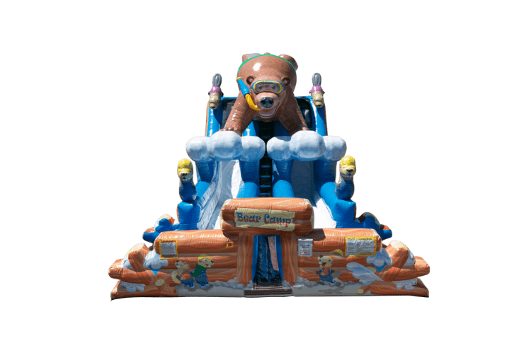 Make a splash with this 18.5 ft Bear Camp Dual Water Slide, a fun and eye-catching rental built for cool, fast-paced excitement. Featuring a bear camp theme and two side-by-side water slide lanes, this unit is a great choice for parties, summer events, and outdoor gatherings where guests want plenty of action. Its tall slide height adds an extra thrill, while the dual-lane design helps keep the fun moving with more than one rider at a time. It’s a lively centerpiece that brings a playful outdoor feel to any event and is perfect for beating the heat in an exciting way.